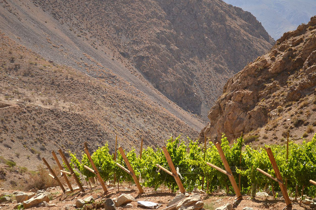 An arid mountain valley at dizzying elevations approaching 2400 meters above sea level, the only water source is snowmelt from the surrounding mountains each spring – just enough trickles into the granitic subsoils and granite bedrock to support the hardiest of vegetation on thin strips of land bordering the Elqui. Centuries ago, locals discovered that grapes could grow in the Alto Elqui, but apart from some sacramental wine, these grapes mostly turned into pisco – the national spirit of Chile and Peru long argued over between the two since the War of the Pacific of 1879-1884.